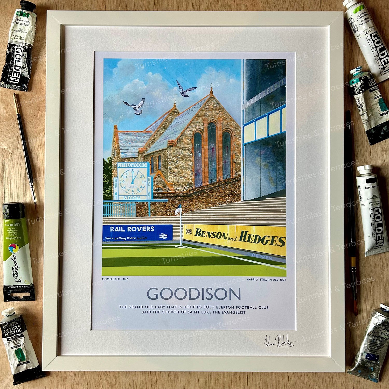 | Product Information | NO DIGITAL PROCESSES ARE USED IN CREATION OF ORIGINAL; IMAGE PRINTS ARE ROLLED IN AN ACID FREE PROTECTIVE SLEEVE WHICH IS THEN PLACED IN A RIGID POSTAL TUBE THE PROTECTIVE SLEEVE PROTECTS YOUR PRINT AND MAKES IT EASIER TO REMOVE FROM THE POSTAL TUBE PRINT ONLY OPTIONS DO NOT INCLUDE MOUNT OR FRAME FRAMED OPTIONS ARE POSTED WRAPPED IN A CARDBOARD BOX WHITE FRAME AND MOUNT ONLY INCLUDED ON FRAMED OPTIONS PRINTED TO ORDER IN THE UK OUR PRINTS ARE PRODUCED ON THE FINEST QUALITY PAPER WITH UV/HUMIDITY RESISTANCE AND ENVIRONMENTALLY FRIENDLY INKS USING MODERN GICLEE PRINTING TECHNOLOGY. POSTAGE AND PACKING INCLUDED IN THE PRICE. ROYAL MAIL FIRST CLASS RECORDED DELIVERY ESTIMATED SHIPPING TIMES PLEASE NOTE THAT INTERNATIONAL SHIPPING ITEMS MAY VARY DUE TO CUSTOMS DELAYS. FRAMES ARE INCLUDED ON FRAMED OPTIONS ONLY. WHITE FRAME PROVIDED AS STANDARD. |